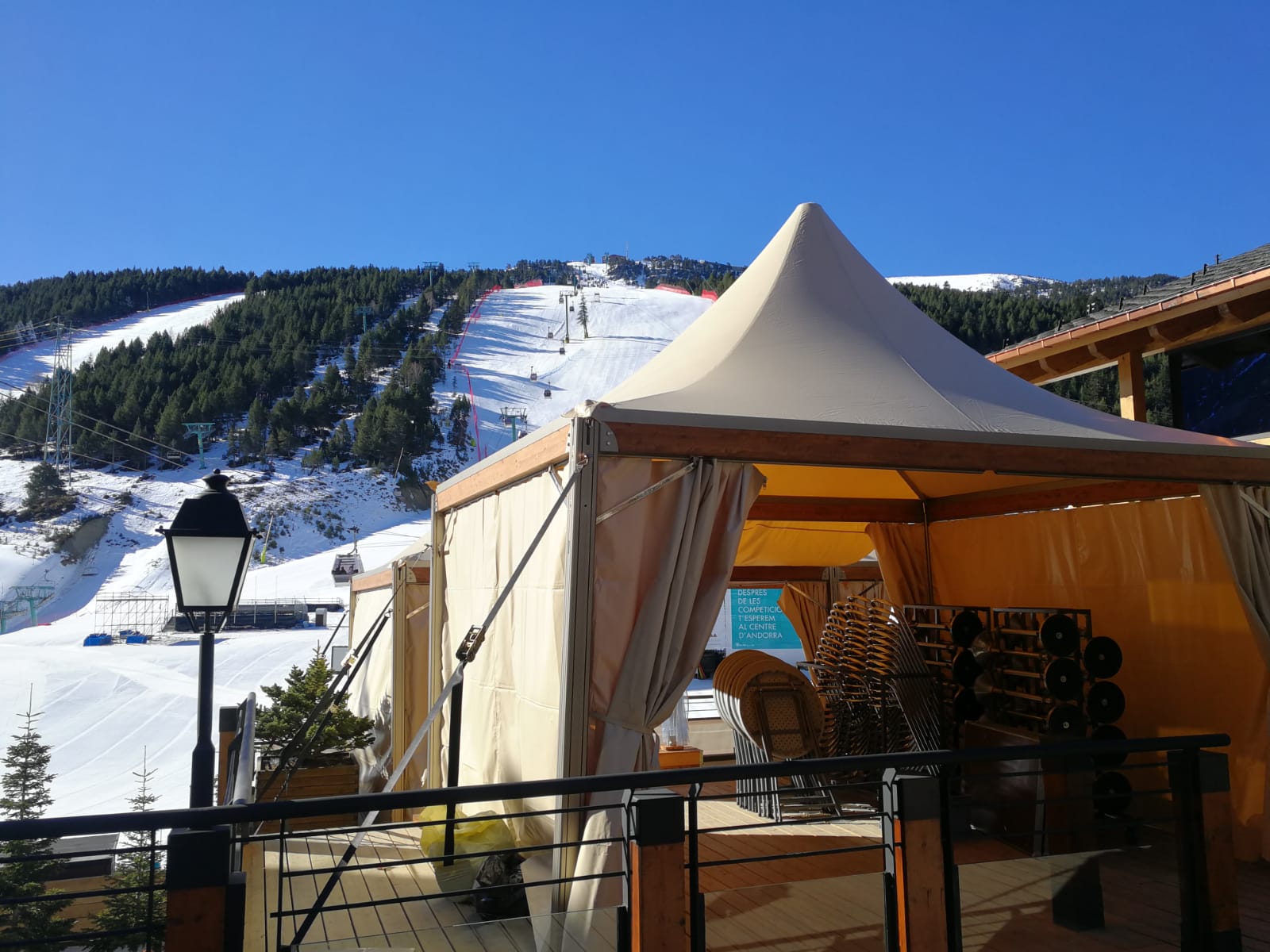 Como recomendación: en caso de fuertes vientos aconsejamos cerrar las cortinas perimetrales de las carpas para evitar la entrada del viento.
