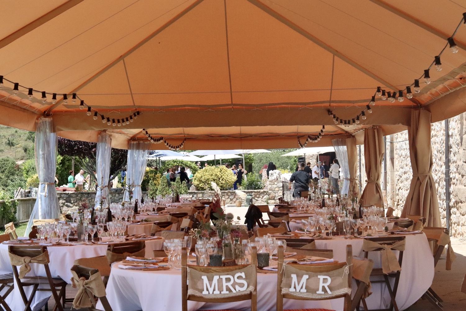 Actualmente está muy de moda celebrar las bodas al aire libre en jardines de casas particulares o zonas exteriores en masías o fincas especializadas para ello. Pero en ocasiones la climatología no acompaña y es fácil encontrarnos con días de lluvias y tormentas. Por eso es importante, a la hora de organizar una boda, tener presente la opción de alquilar carpas para proteger a los invitados tanto de las lluvias como del viento o bien del sol en caso de esos días calurosos de verano y así poder seguir disfrutando de las ventajas de estar al aire libre. También con el alquiler de parasoles.